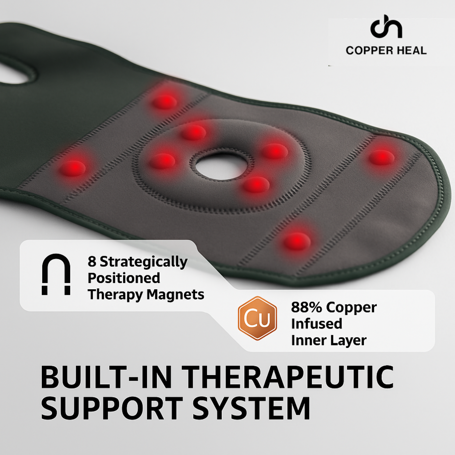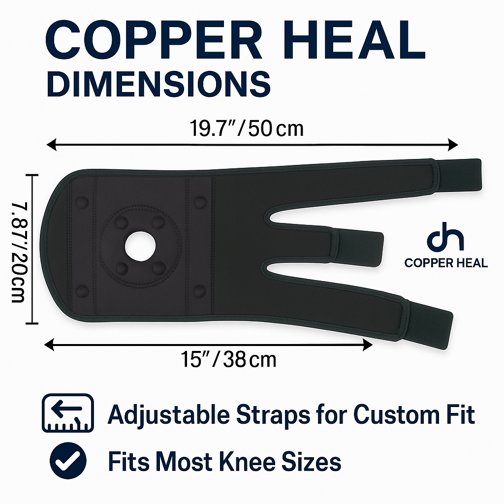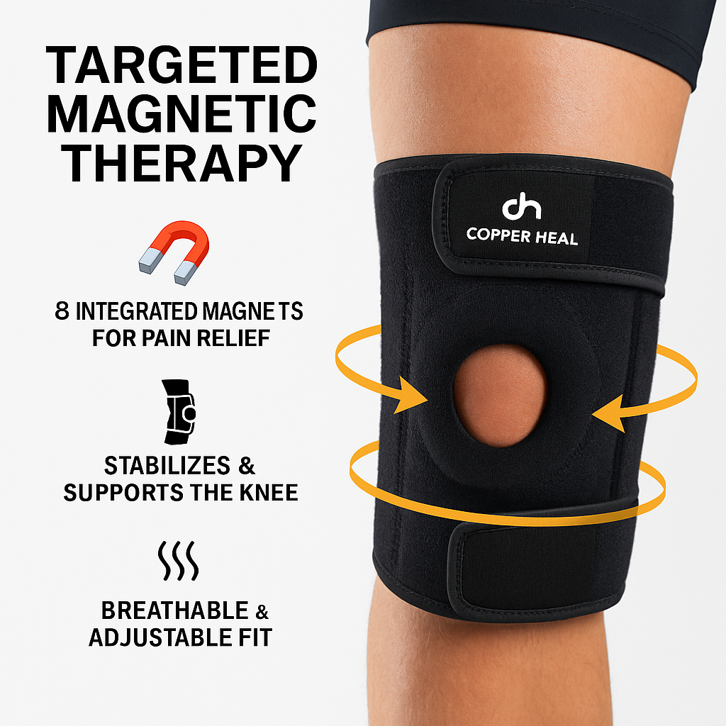 COPPER HEAL Magnetic Knee Brace – Copper-Infused Compression Sleeve for Pain Relief, Support & Recovery – Adjustable Knee Brace for Men & Women